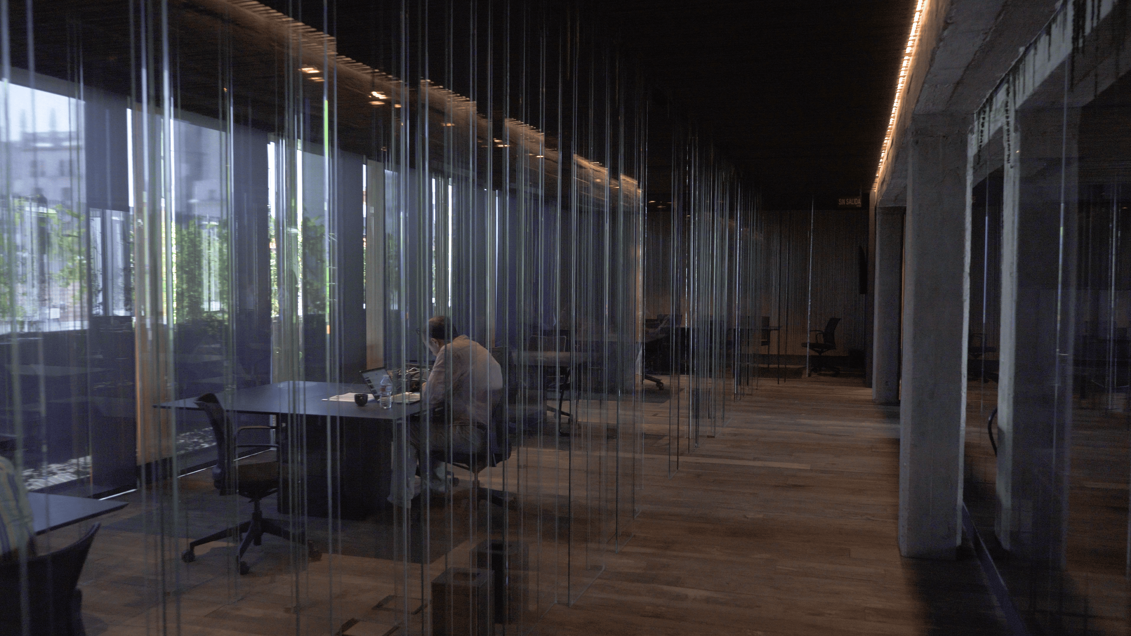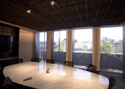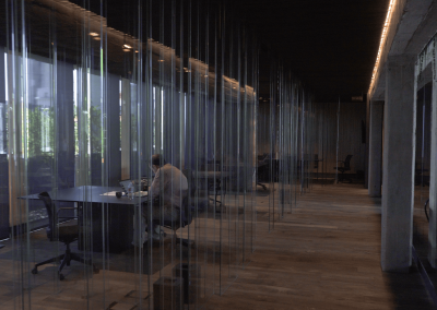 Se parte de materiales naturales y una cuidada iluminación que crean un ambiente de trabajo relajado y elegante. Espacio diáfano que se puede sectorizar para dar la privacidad necesaria o transformarse en espacios de trabajo comunes de formación o reuniones.